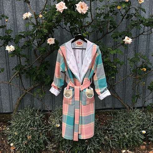 Repurposing Aussie wool vintage blankets and sheeting into fully lined dressing gowns that endure. Super snuggly and cosy with two styles offered, ladies hooded robe to ward off Winter chills and drafts or unisex shawl collar for a more traditional silhouette. Due to their popularity and the fact they are truly laborious to make, custom orders are currently on hold. Please see selection on offer in SHOP tab.